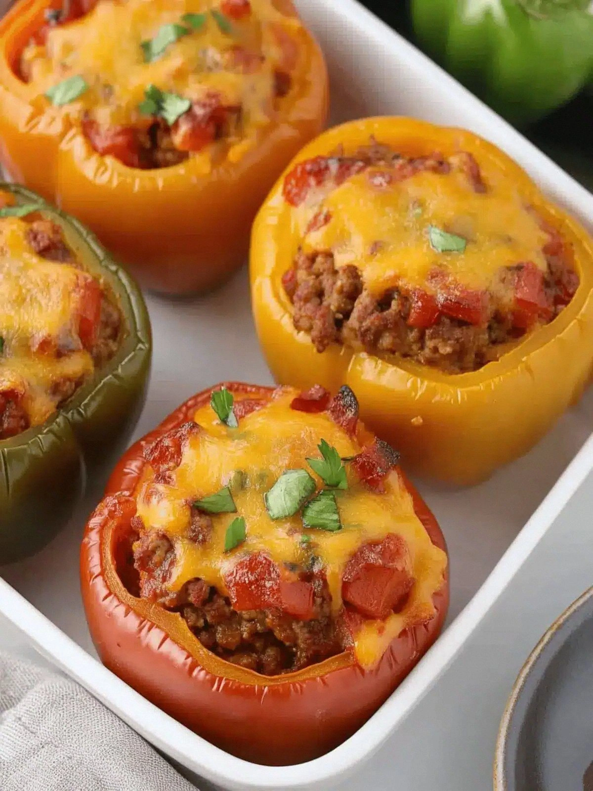 Letting the stuffed peppers rest after baking lets the juices redistribute, preventing a dry bite. The rest also allows the cheese to set slightly, making it easier to slice cleanly. I used to cut straight out of the oven and ended up with a messy mess. That simple pause makes the difference between a mess and a masterpiece.